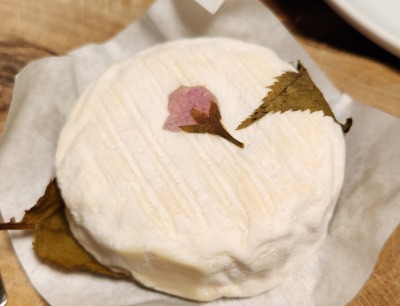 桜の花の塩漬けをあしらった、和菓子のような可愛いチーズです。