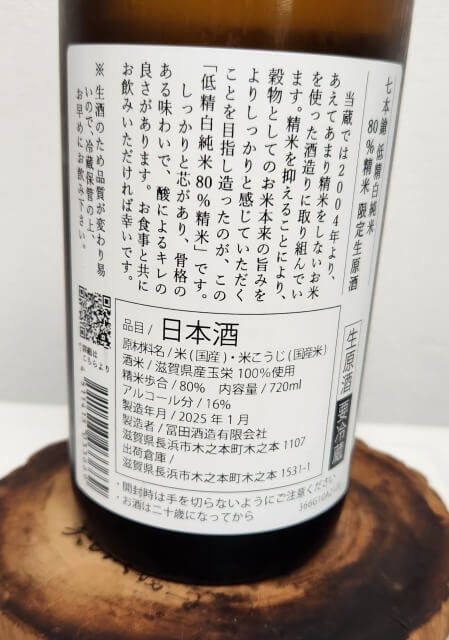 今回購入したお酒も精米は80%。